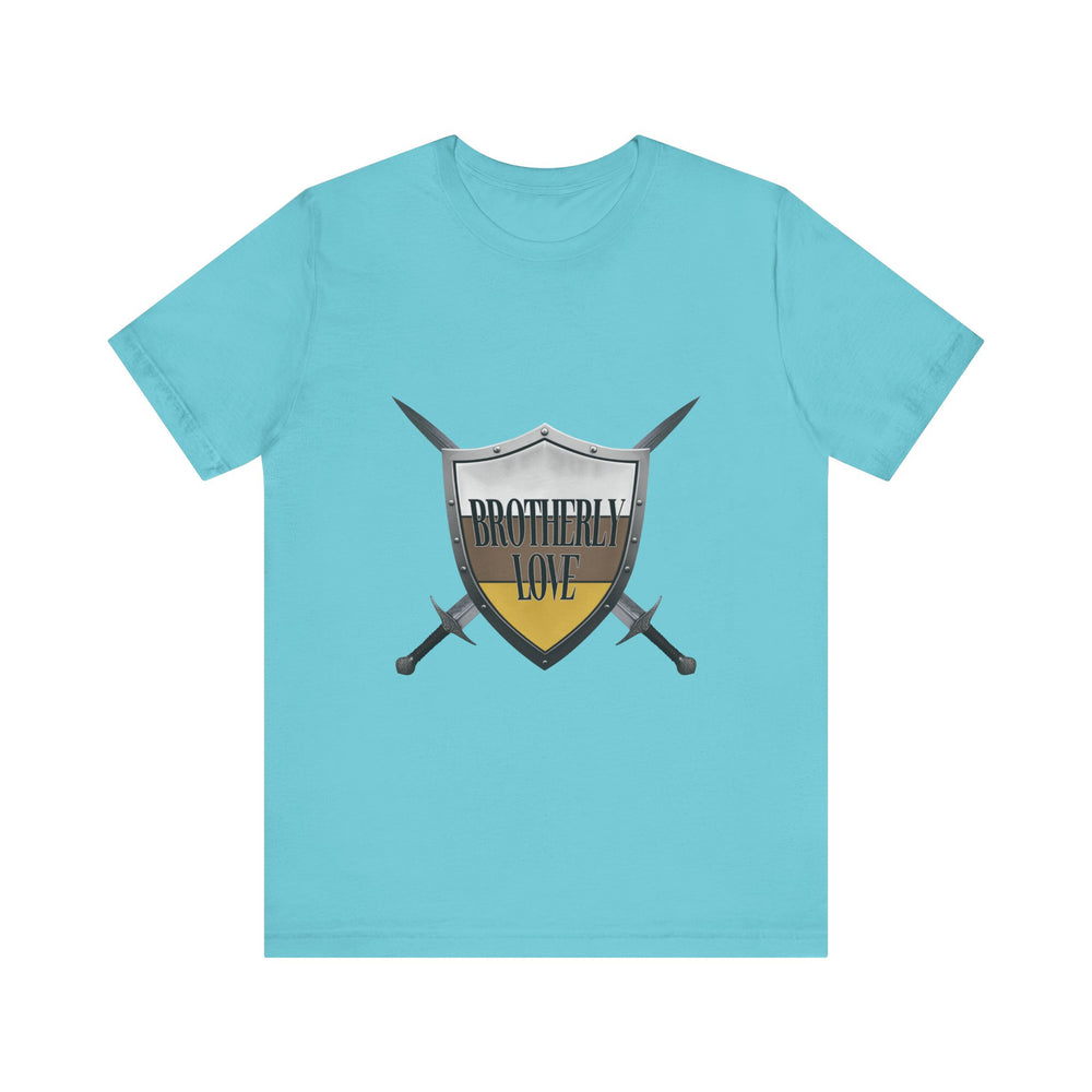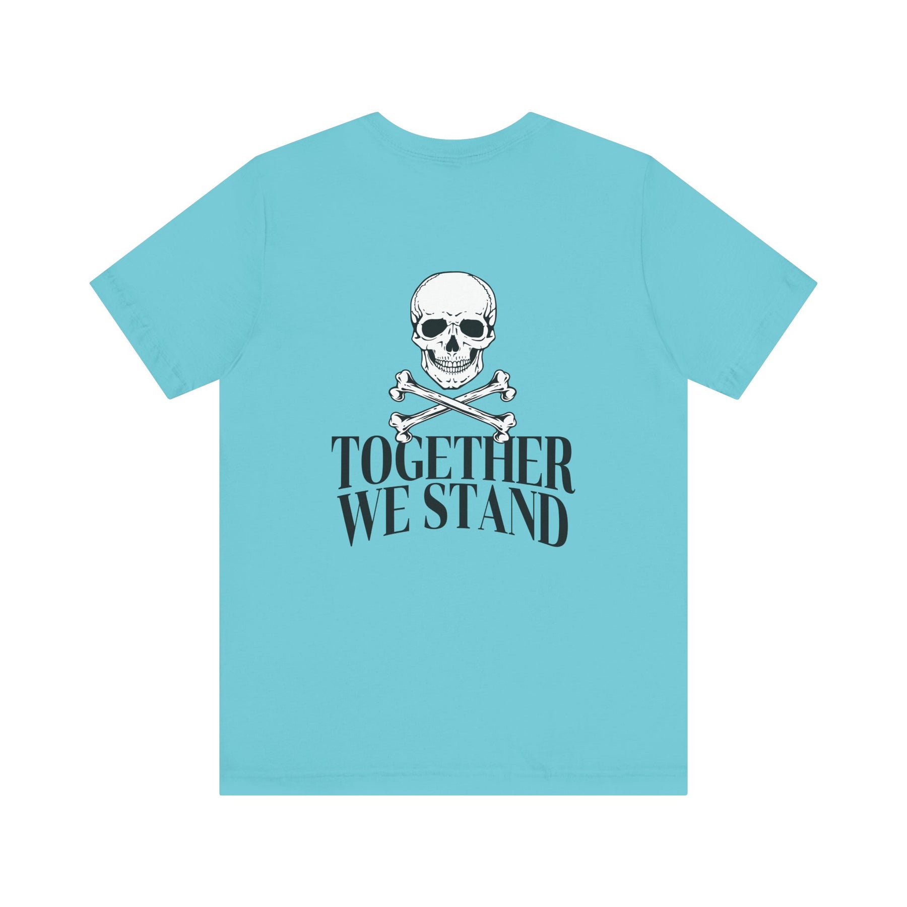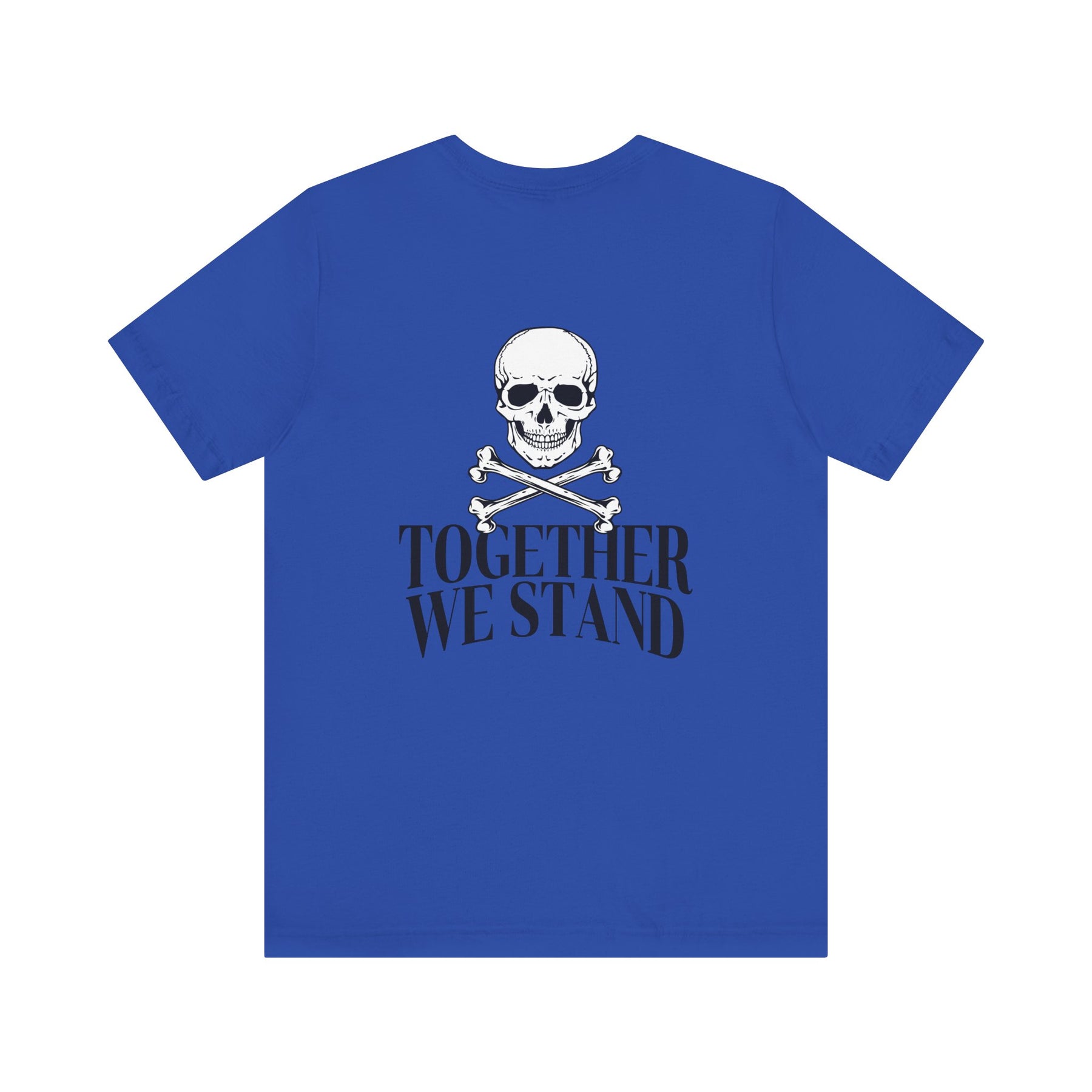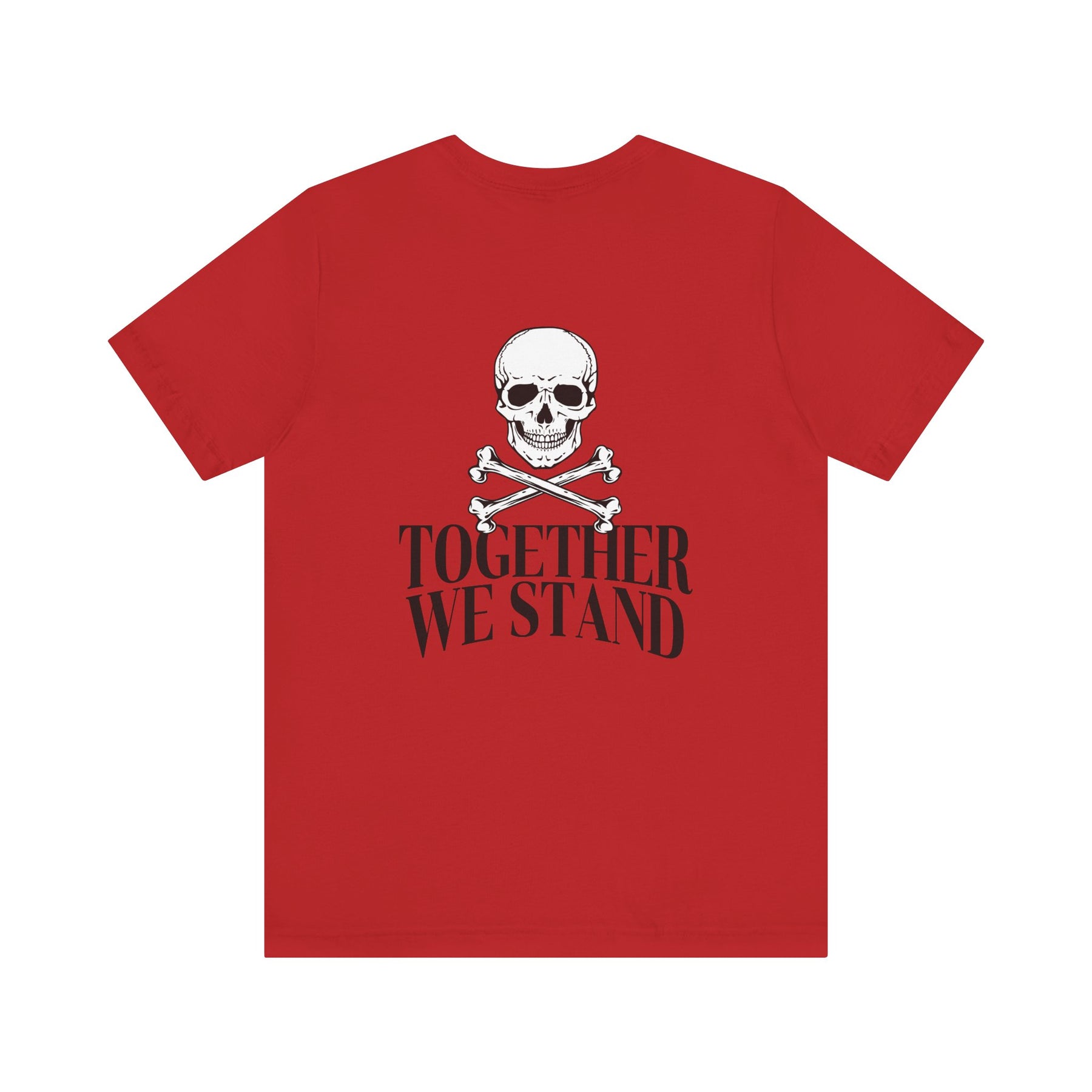 A red shirt with a shield in the front, skull and crossbones in the back that symbolizes unity among brotherhood.